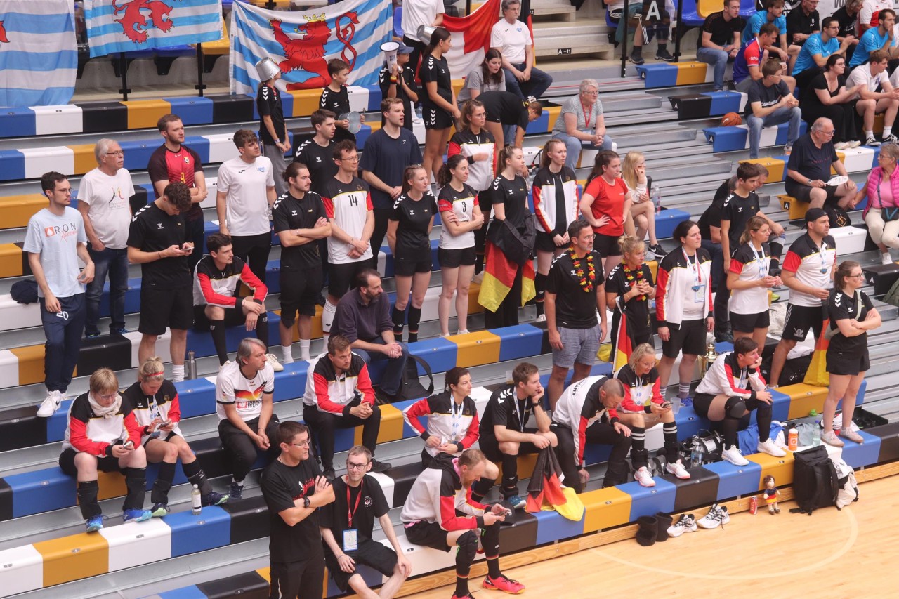 In der offenen Klasse war zunächst Estland Gegner der deutschen Mixed-Nationalmannschaft. Zweifel am Sieg bestanden während des Spiels kaum und so siegte man ungefährdet mit 25:21 und 25:19. Dramatisch verlief dagegen das Finale der Damen. Mit 25:13 wurde das estnische Nationalteam im ersten Satz förmlich überrollt und alles sah nach einem weiteren Sieg aus. Doch bereits am Ende des Satzes hatten sich die Gastgeberinnen besser auf das deutsche Spiel eingestellt und setzten dies im zweiten Satz auch sofort um. Das deutsche Team blieb ständig im Rückstand und kam im gesamten Satz, der mit 20:25 verloren ging, zu keinem Zeitpunkt ernsthaft heran. Ähnlich begann der dritte Satz. Erst zum Ende des Satzes fanden die deutschen Damen wieder zu ihrem Spiel. Estland rettete die Führung aber mit 25:23 ins Ziel und wurde Weltmeister. Für die Kamener Spielerinnen war es nach der WM 2022 und dem Worldcup 2023 die dritte knappe Finalniederlage in Folge, so dass die Enttäuschung natürlich groß war. Zum Abschluss folgte bei den Herren die vierte Goldmedaille für Deutschland. Mit 25:20 und 25:15 ließ man Luxemburg keine Chance.