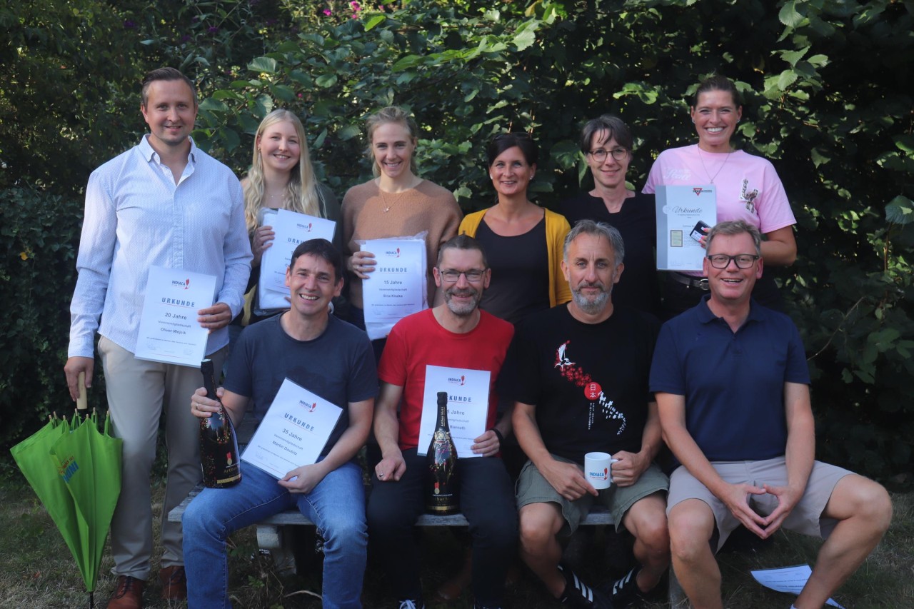 Foto: die Jubilare des CVJM Kamen im Garten des Gemeindehauses