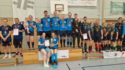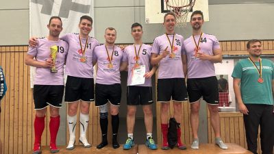 Und da die TSG Blankenloch das zweite Halbfinale gewonnen hat, sollte das Finale auch zu einer Wiederholung von 2023 werden. Im ersten Satz machten die Blankenlocher kaum eigene Fehler und verwandelten die Angriffe mit Präzision. Mit Problemen im Kamener Aufbauspiel und herausragenden Abwehrleistungen der Blankenlocher hieß es am Ende des ersten Satzes 19:25. Im zweiten Satz starteten die Kamener besser und der Satz gestaltete sich als Schlagabtausch. Nachdem man sich kurzzeitig abgesetzt hatte, ließ man die TSG nochmal herankommen, konnte jeodch den Satz schlussendlich mit 26:24 gewinnen. Im Entscheidungssatz zeigten beide Mannschaften, dass sie zu Recht im Finale standen. Zum Seitenwechsel konnte sich der CVJM Kamen zum ersten Mal eine 3-Punkte Führung erspielen und mit den besseren Nerven wurde der Satz am Ende mit 25:19 noch deutlich gewonnen und das Triple perfekt gemacht. Dritter wurde die Mixedmannschaft des Ausrichters TSV Grünwinkel.