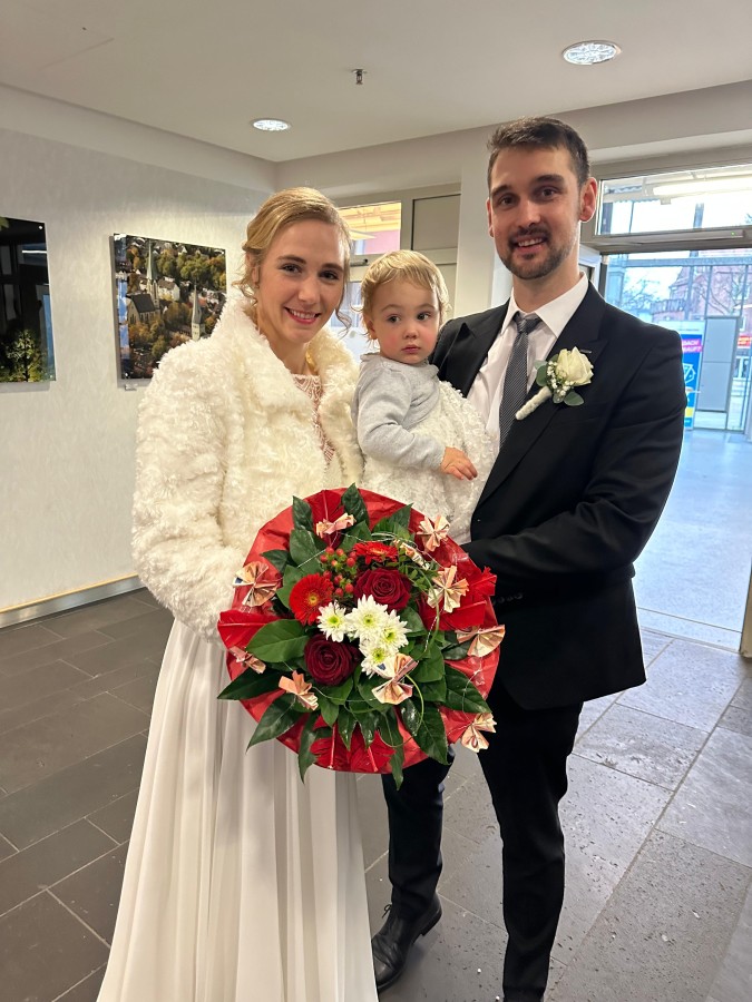 Zum Jahresende haben wir noch eine freudige Nachricht: unsere langjährigen Mitglieder Sina Kiszka und Mark Potthoff haben sich kurz vor der Indiaca-Nacht vor dem Standesamt in Kamen das Ja-Wort gegeben. Beide sind nicht nur in der Damen- bzw. Herrenmannschaft sowie gemeinsam im Mixedteam aktiv, sondern leisten als Pressewartin bzw. Jugendwart auch seit vielen Jahren Vorstandsarbeit. Im Beisein zahlreicher Vereinsmitglieder überreichte der 1. Vorsitzende Dirk Marquardt den beiden einen kleinen Indiaca-Blumenstrauß und ein kleines Geldpräsent. Wir gratulieren auch an dieser Stelle noch einmal ganz herzlich!